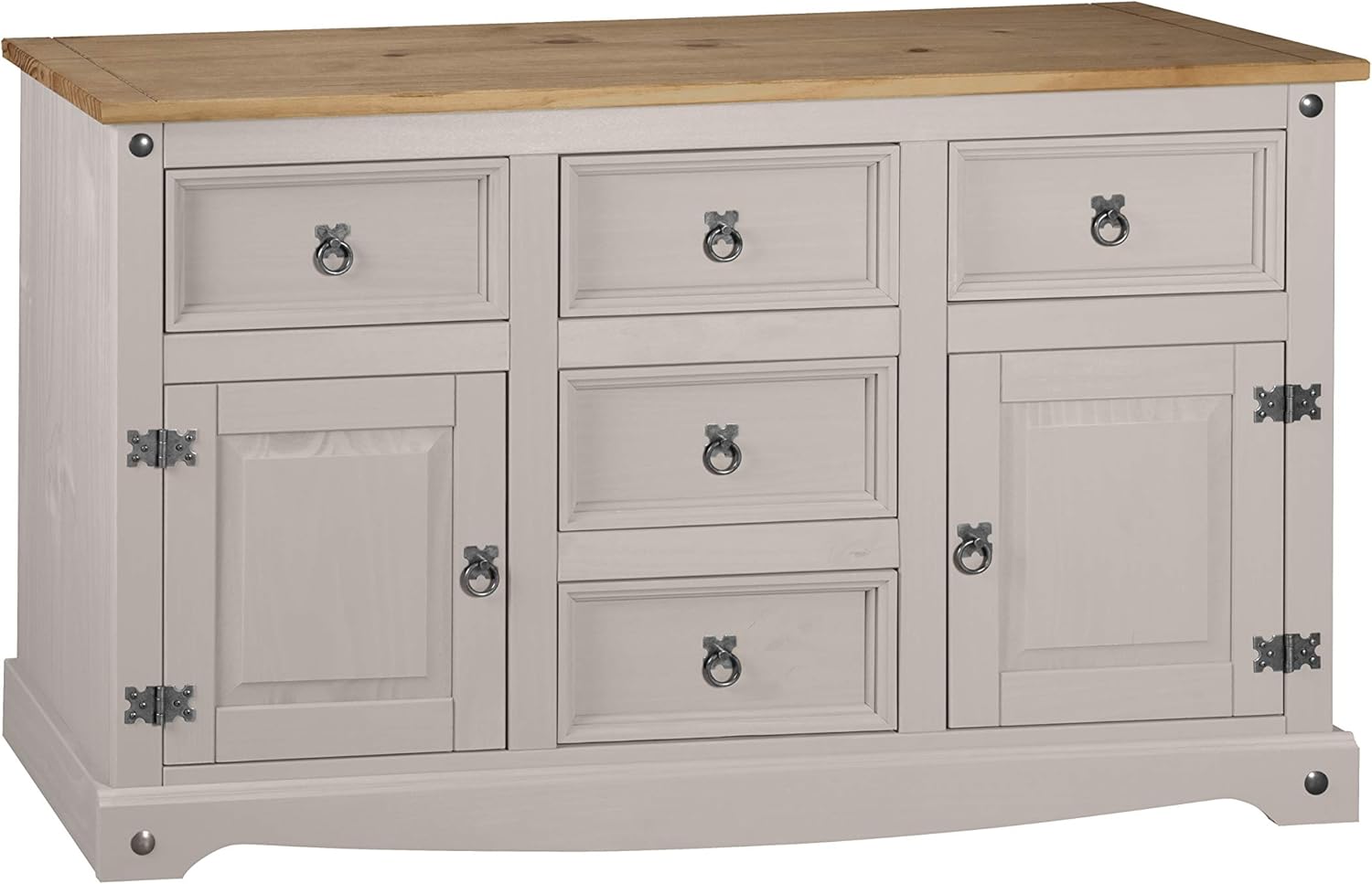 Corona Grey Sideboard 2 Door 5 Drawer, Solid Mexican Pine