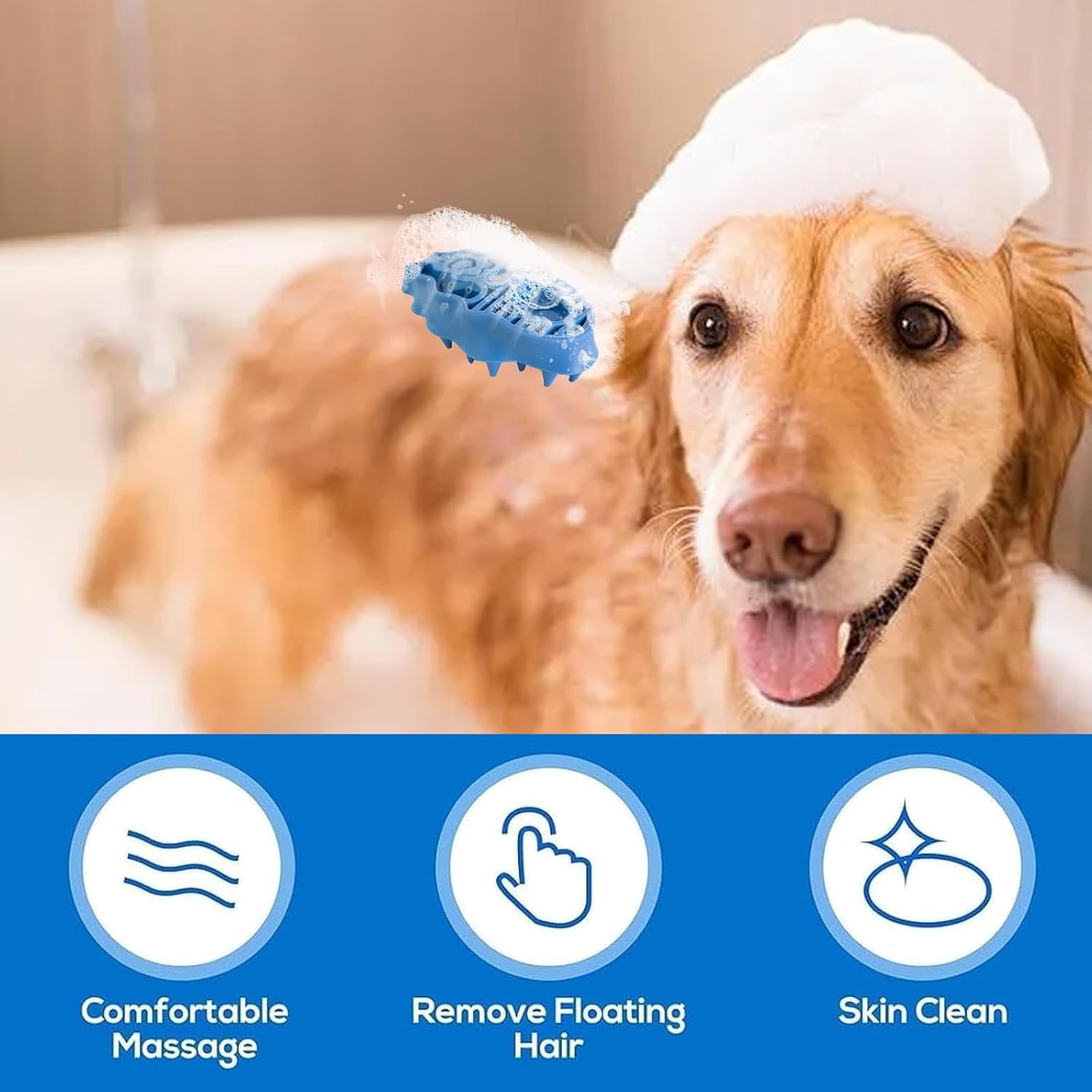 Dog Bath Brush, Zoom Groom Dog Brush, Dog Shampoo Brush, Dog Grooming Brush, Zoom Groom, Pet Bath Massage Silicone Comb, For Detangling And Removing Loose Undercoat Or Shed Fur(Blue) 【Easy to Clean】: Simply rinse it under running water to remove any dirt or hair, ensuring that it remains clean and ready for the next grooming session 【Comfortable And Gentle】: This dog brushes for shedding is made of soft and flexible rubber material, which gently massages your pet’s skin during brushing and reduces discomfort during the grooming process, providing a comfortable and pleasant experience for your dog 【Unique Design】: Our dog hair removal brush handle is ergonomically designed for a comfortable grip and long-lasting combing, the unique blue color appearance is stylish and generous, easy to spot when used outdoors to avoid loss 【Comfortable and Gentle】: Our dog brush is equipped with soft yet sturdy bristles that gently massage your pet’s skin while brushing, providing a comfortable and enjoyable experience. This not only keeps your pet calm and relaxed but also promotes healthy circulation and a shiny coat 【Versatile Grooming Tool】: With its versatile design, the dog brush can be used on all coat types, from short-haired breeds to long-haired ones. Whether your pet has thick fur or fine hair, this brush easily removes dirt, dander, and loose hair, leaving their coat looking clean and well-maintained