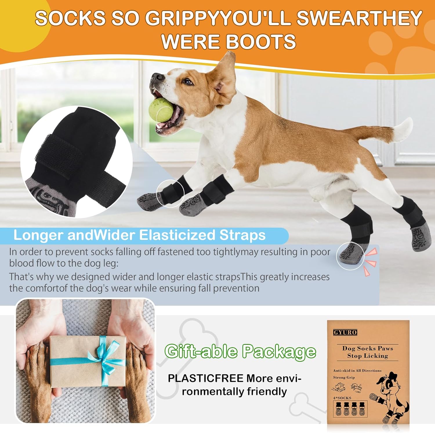GYURO Dog Paw Protectors, 2 Pairs Anti Slip Dog Socks with Grips, Adjustable, for Hardwood Floors, Indoor Walking (XS)
