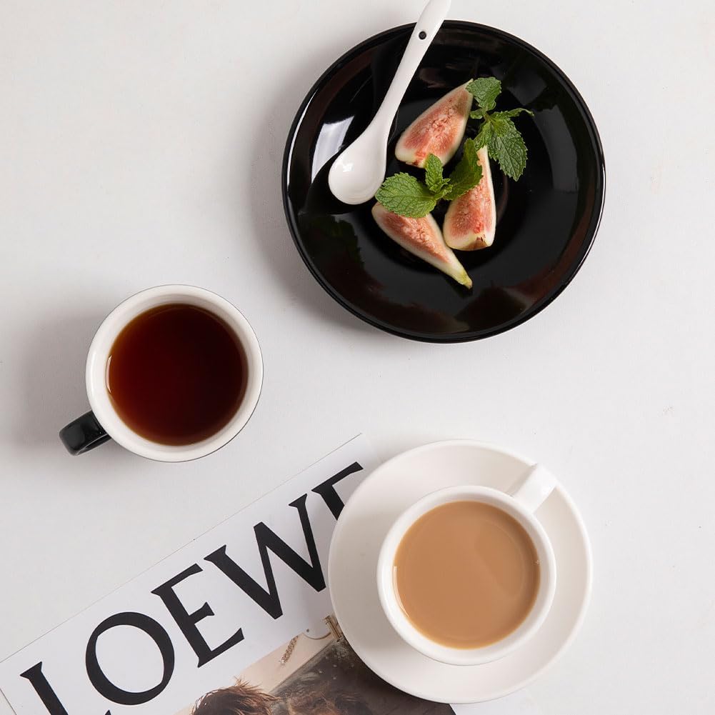 Sweejar Home Ceramic Cappuccino Cups Set, 120ml Espresso Cups, Porcelain Cup & Saucer Set, Tea Cup Set for Specialty Coffee Drinks, Latte, Americano, Set of 4 (Black)