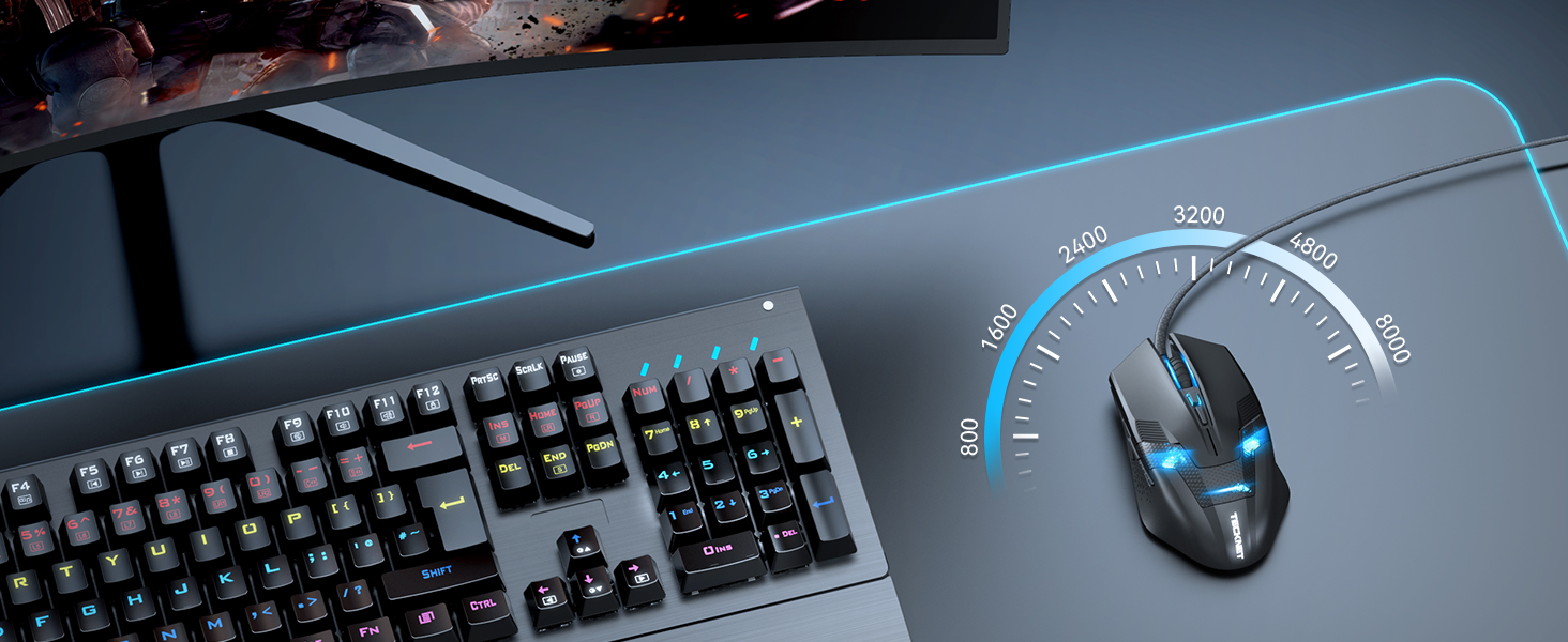【TECKNET Speedflex Cable and On-board memory 】The TECKNET Gaming cable has greater flexibility and is designed to produce minimal drag, so that you can perform quicker, smoother swipes for a higher degree of control. Gamer can save polling rate, keybinds, and up to five CPIs directly on the gaming mouse.