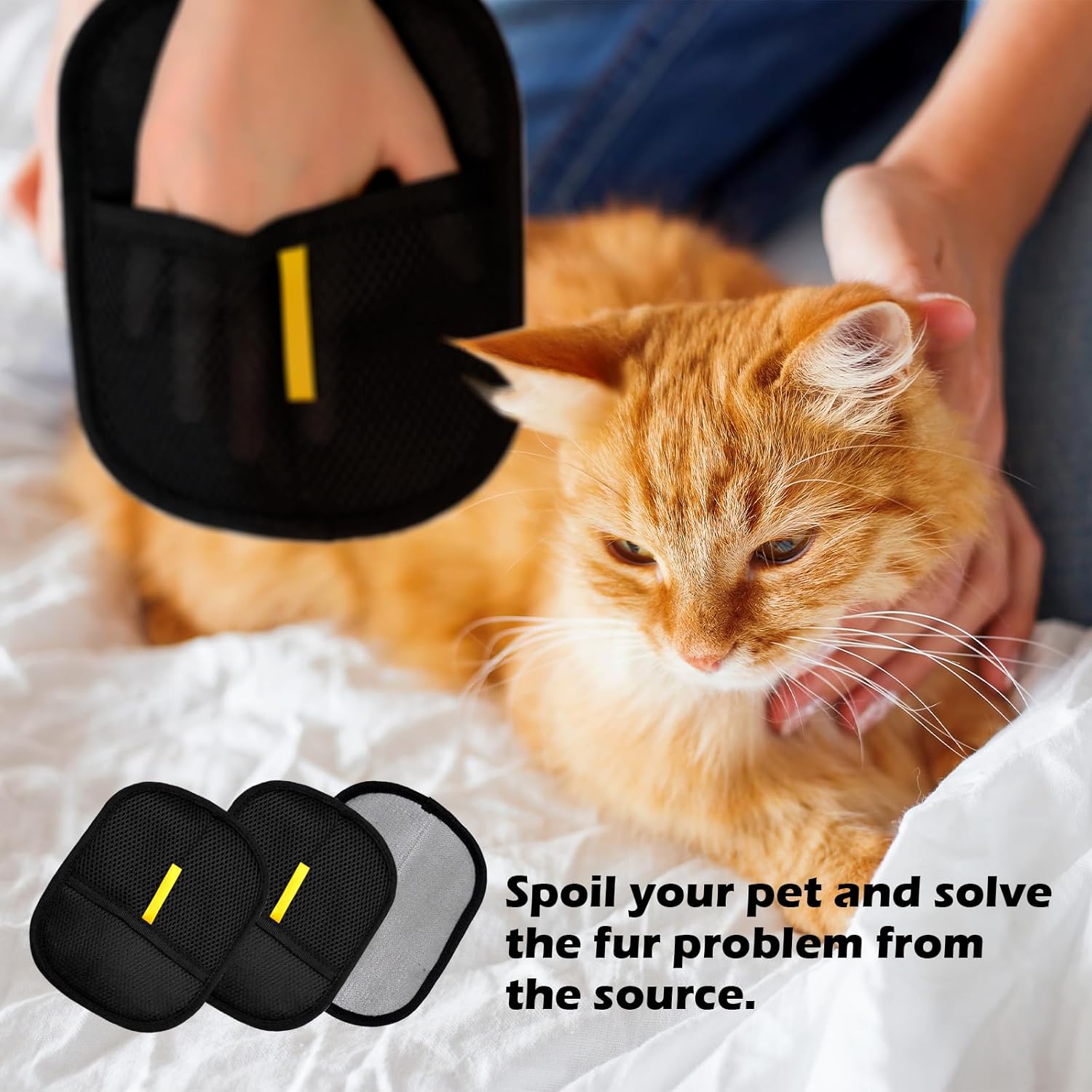 TULEBOLIAN 3Pcs Double Sided Pet Grooming Gloves, Static Removal Gloves Pet Hair, Washable Reusable, Cat Grooming Glove for Bed Sheets Couch Clothes Carpet, Versatile Grooming Gloves for Washing