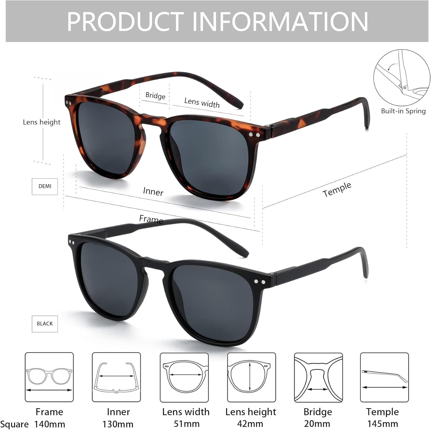 ZENOTTIC 2 Pack Polarised Sunglasses Womens Mens Retro Vintage Round and Square Sun Glasses with UV400 Protection Unisex